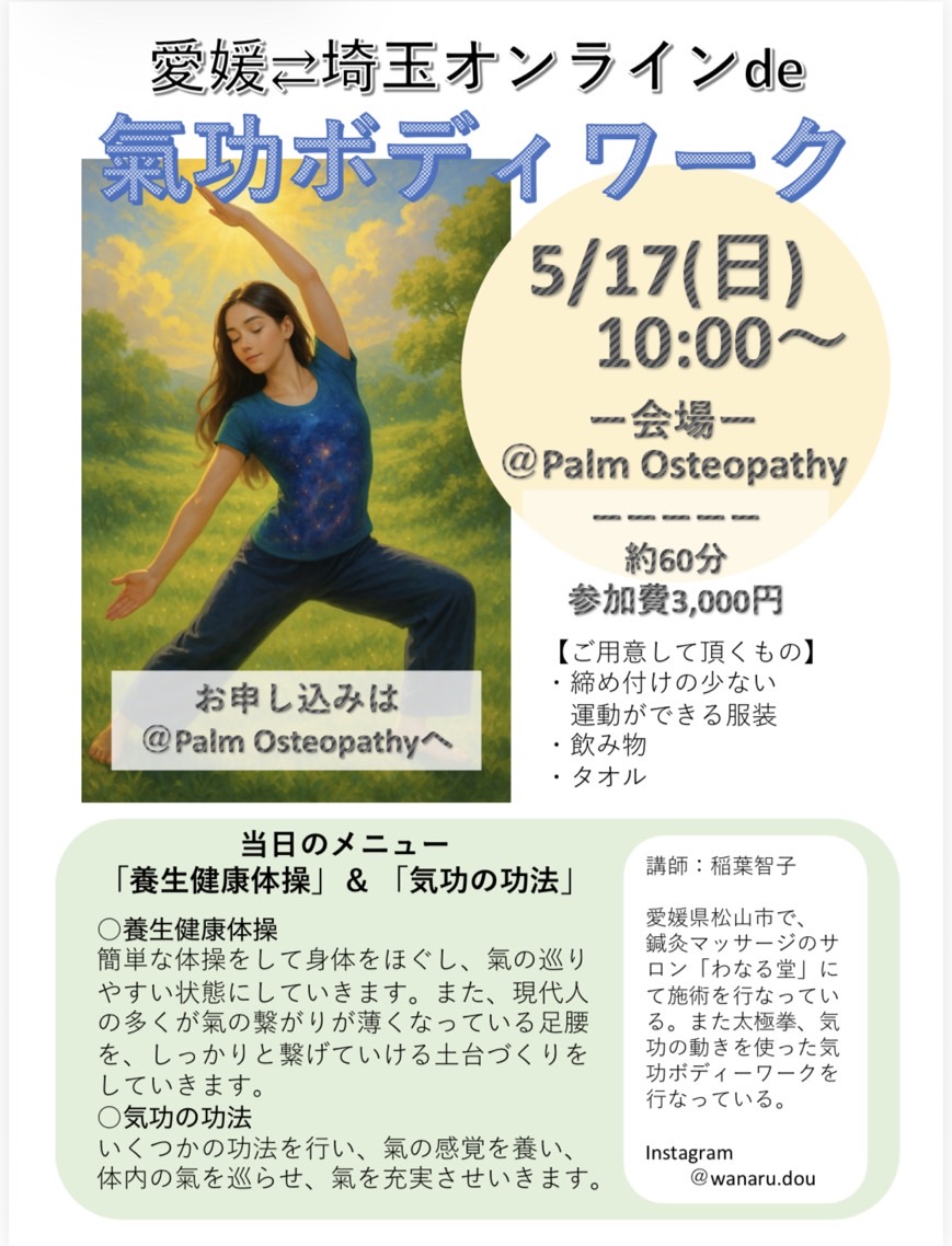 ●5月17日 第5回 オンラインDe 愛媛⇄埼玉 氣功&養生健康体操 開催